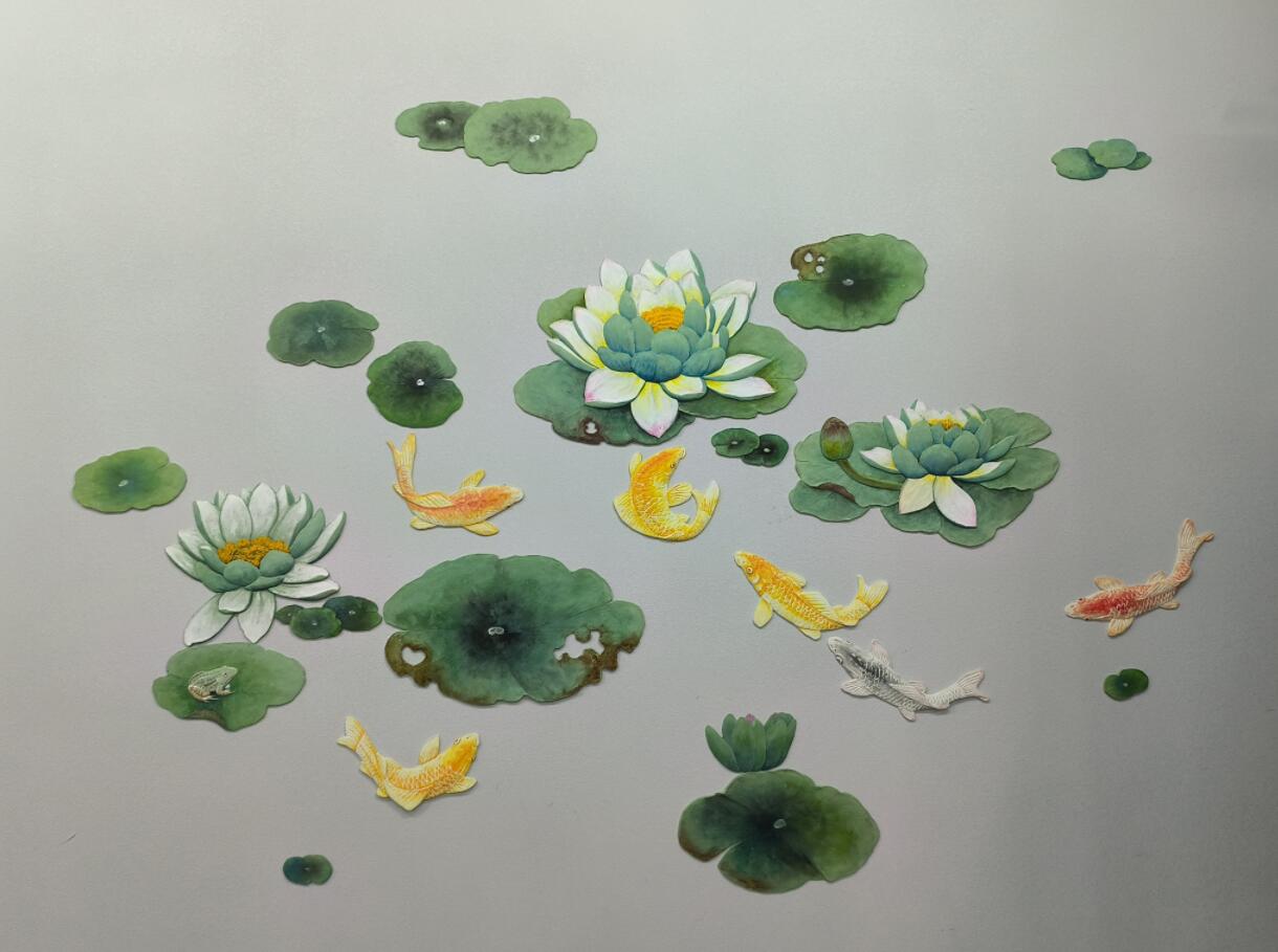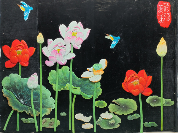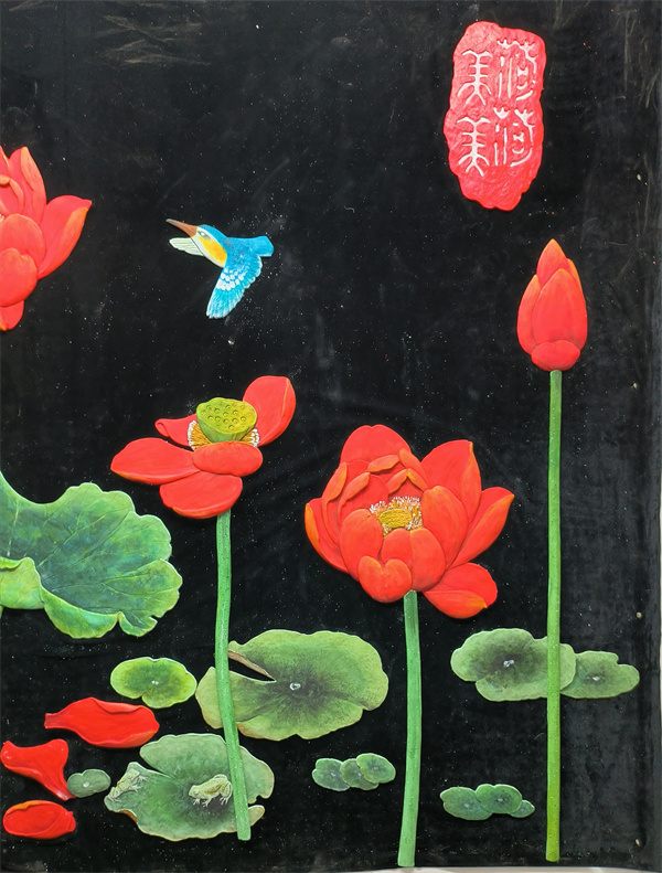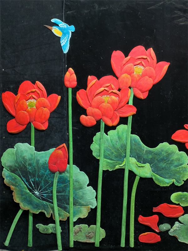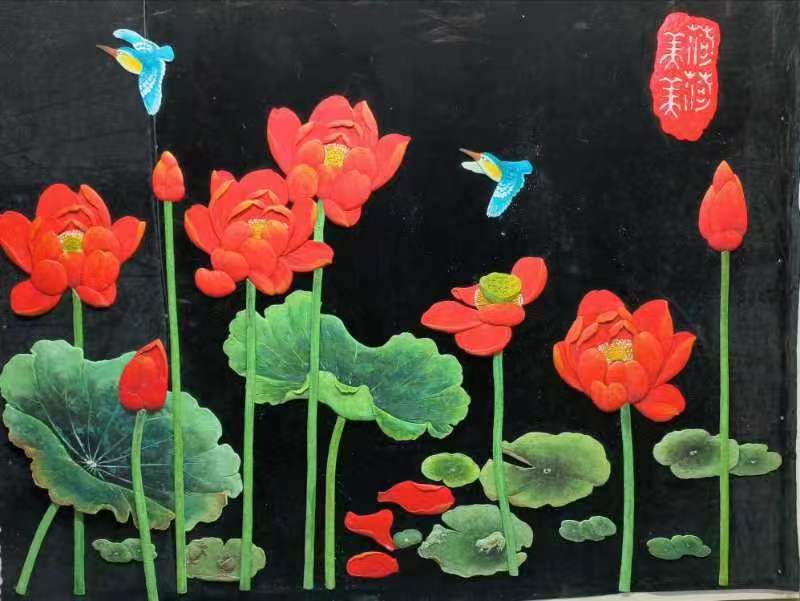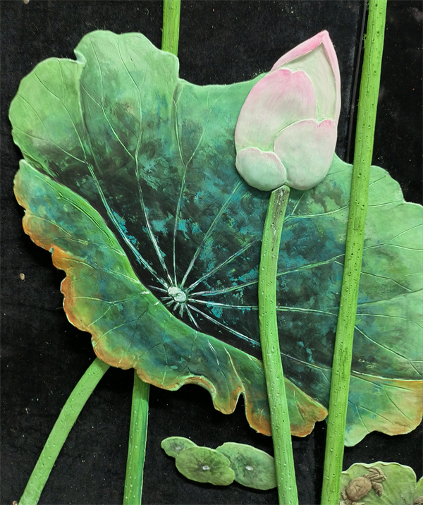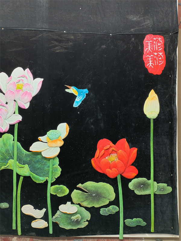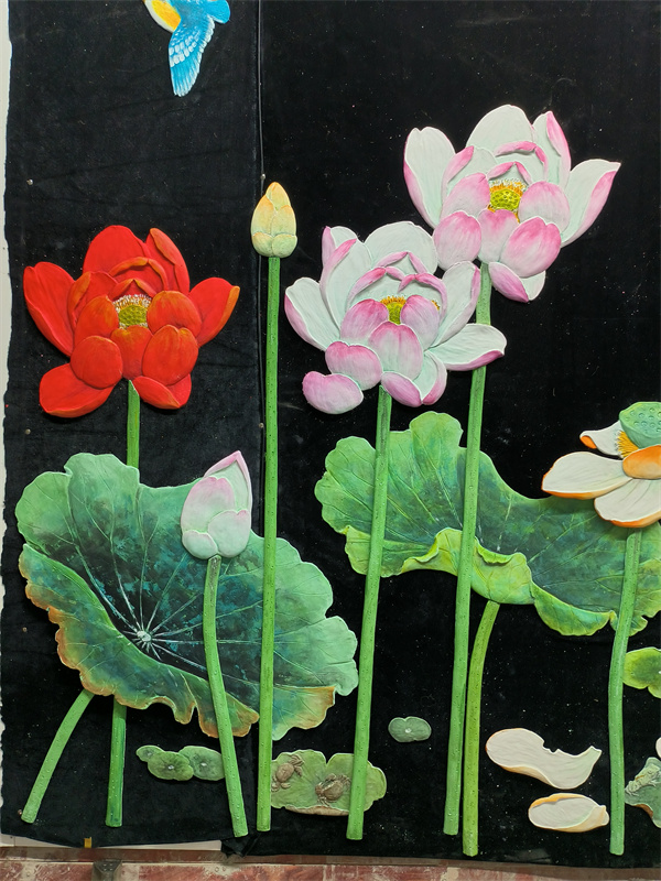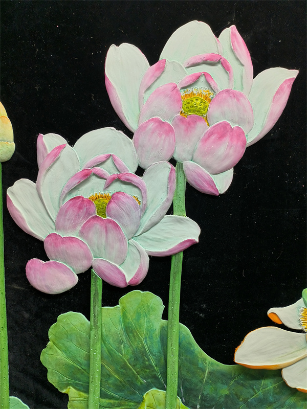 艺术涂料浮雕雕刻大白荷花空间图形装贴过画